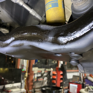 スタッドレス交換のついでにオイル、フィルター交換&下廻りの錆止め処理をします。このお客様はスキーヤーなので高速で長野県のスキー場に良く行く為、塩害対策をしてないと大変デス。